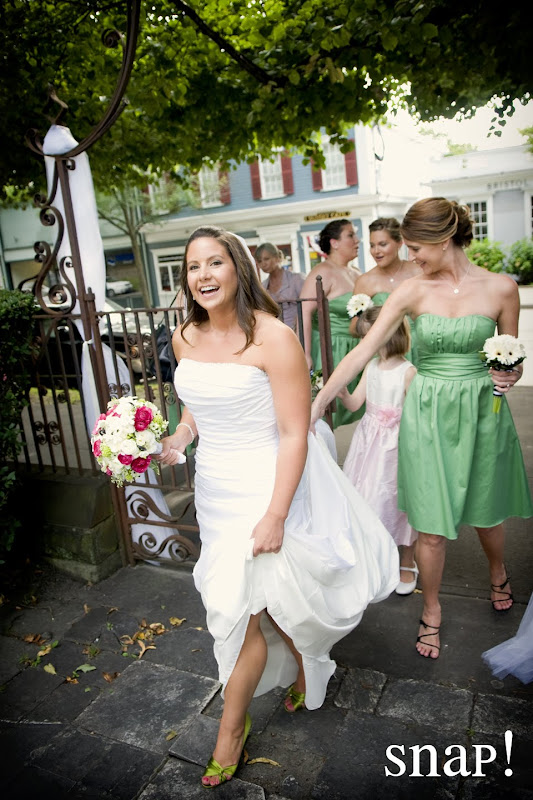 Meanwhile, the girls and I are getting ready to walk over to Linden? What's better than sashaying through town in your wedding gown?
